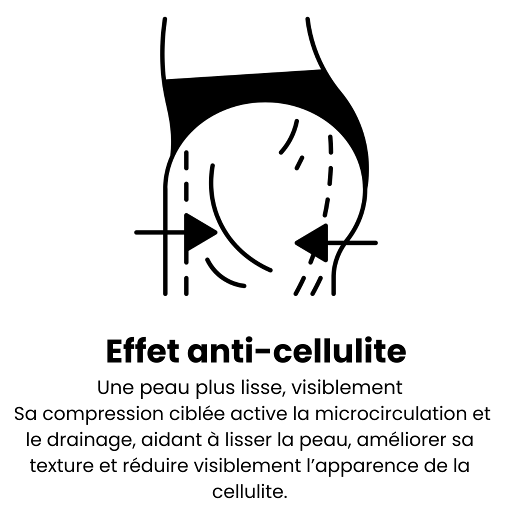Les effets à long terme sur l’apparence de la cellulite et la fermeté de la peau apparaissent avec un port régulier après quelques semaines.